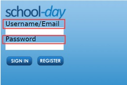 1) Navigate to your school's website and enter your School-Day account Email address and Password.