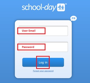 3) Enter your School-Day account email address and your password, then click the blue Log In button.
