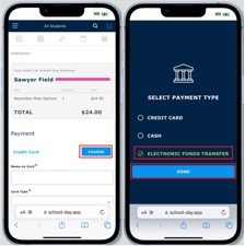 If using our responsive site https://school-day.app [https://school-day.app/#!/] , click or tap the Change button, tap Electronic Funds Transfer, then Done.