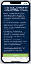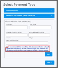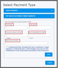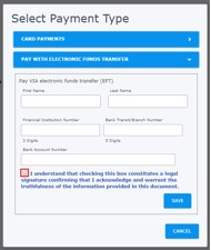 2) From the Select Payment Type pop up, click on Pay With Electronic Funds Transfer.