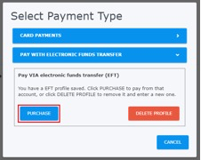 7) Now that your profile has been saved, click on the Purchase button on the Select Payment Type pop-up.
