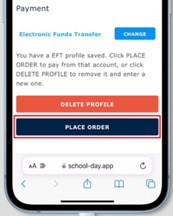 If using our responsive site https://school-day.app [https://school-day.app/#!/] , click or tap Confirm to acknowledge you have reviewed and understand the EFT payment process and associated timelines.