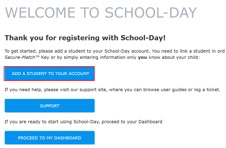 • If you have just created an account, click on Add A Student To Your Account from the Welcome To School-Day screen.