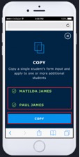 4) Tap the students you wish to copy your completed options and forms to, then tap on Copy.