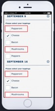 8) Scroll up on the screen to review and edit any portion of the previously merged input, such as deselecting a pizza topping copied over which another student may not want.