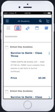 15) Tap and scroll up on your device screen to review all of the items in your cart. The items will be broken down by student, and each item will display the form options selected for each individual date.
