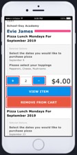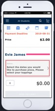 We’re pleased to announce that we’ve streamlined the ordering process on our mobile platform for Parents. Enhanced Product Forms allow parents to easily place food product orders for multiple dates and topping selections. Parents are now able to place orders for one or more students for the same items in just a few simple taps.