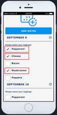 8) Tap on the form options you would like to select for the first date you have selected and continue to scroll up to select options for additional dates.