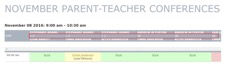 6) The highlighted text you see below refers to the location in which the appointments take place and does not refer to grades for your student. What parents see in this section are the choices made by the creator of the schedule for the location of the appointments, which default at the time of creation to one of the classes taught by the teacher.