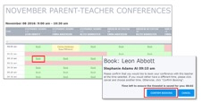 • You cannot book more than one appointment with the same teacher for the same conference event for the same student, regardless of how many classes your student has with that teacher.