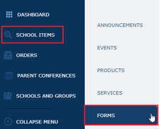 1) You can access Forms, by logging into School-Day at www.school-day.com, clicking on School Items and clicking on Forms.